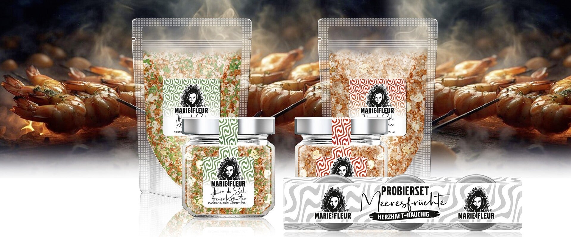 - Flor de Sal Mischungen, die Seafood ideal unterstreichen,